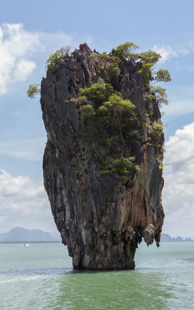 Voor de westkust van Thailand, in de Baai van Phang Nga, ligt een bijzonder eiland. Het is zo’n 20 meter hoog, maar heeft op zeeniveau een doorsnede van slechts 4 meter. De bovenkant is met 8 meter iets breder. Ko Tapu (spijkereiland) was te zien in de James Bond-film The Man with the Golden Gun uit 1974. Sindsdien is het een populaire toeristische attractie en wordt het ook wel het James Bond-eiland genoemd.