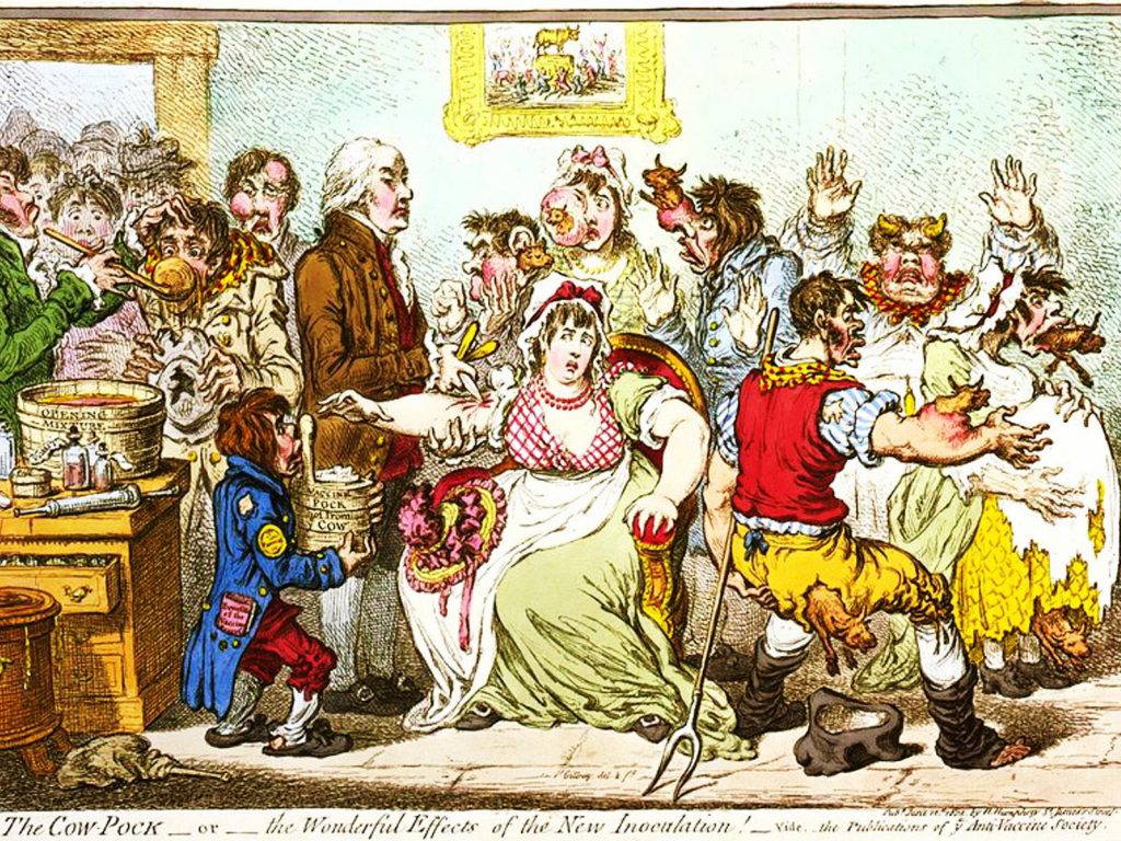 Nu is vaccinatieweerstand van alle tijden. Als de Britse arts Edward Jenner eind achttiende eeuw ontdekt (onder andere door zijn eigen kinderen als proefkonijnen te gebruiken) dat een infectie met de milde koeienpokken beschermt tegen de zeer ernstige ‘mensenvariant’ van pokken, wordt zijn vondst zeker niet met open armen ontvangen. Vroedvrouwen die zijn methode proberen door te voeren om pasgeborenen te beschermen, worden soms zelf als heks bestempeld. Een kind welbewust een ziekte geven, dat moet wel het werk van de duivel zijn. Toen Engeland eind negentiende eeuw vaccinaties verplicht stelde, gingen duizenden mensen de straat op omdat ze er niks van wilden weten.