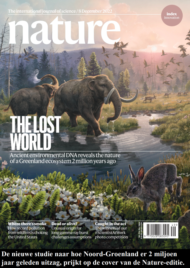 Overigens zagen de zoogdiersoorten die toen in Noord-Groenland leefden, er waarschijnlijk niet uit zoals de cover van de Nature-editie laat zien. “Wat we ook van Tegelen en andere vindplaatsen weten, is dat de zoogdiersoorten uit die tijd duidelijk anders waren en er vrijwel nog geen moderne soorten waren. Dus als ik in het artikel rendier lees, dan neem ik dat wel met een korreltje zout. Dit moet een voorouder van het rendier zijn geweest.”