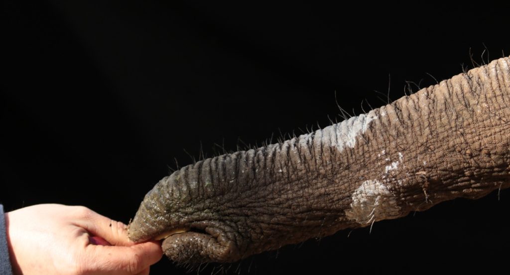 “Olifanten ontwikkelden tijdens hun evolutie een groot huidoppervlakte (met al die plooien en rimpels) om beter te kunnen afkoelen”, vervolgt ze. “Nu blijkt hij te hebben gedacht dat als je dan toch extra huid op de slurf hebt, je er net zo goed nog iets anders nuttigs mee kunt doen, zoals nóg verder reiken dan met alleen spierkracht kan.”
