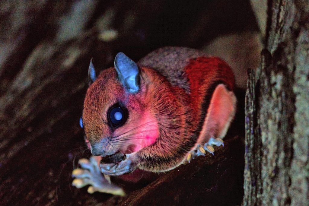 Althans, dat is een van de mogelijke verklaringen die Martin en zijn collega Allison Kohler opperen in hun artikel uit 2019 in Journal of Mammology. Kohler bescheen voor deze studie verschillende vliegende eekhoorns met een uv-lamp. Ten eerste de eekhoorns van het geslacht Glaucomys die Martin tegenkwam: deze dieren zijn tijdens de schemering en ’s nachts actief. Daarnaast onderzochten ze ook soorten van een ander geslacht dat juist uit dagdieren bestaat. 108 van de 109 doorgelichte Glaucomys-eekhoorns kleurden roze onder een uv-lamp, terwijl de eekhoornsoorten die overdag actief zijn geen fluorescentie vertoonden.
