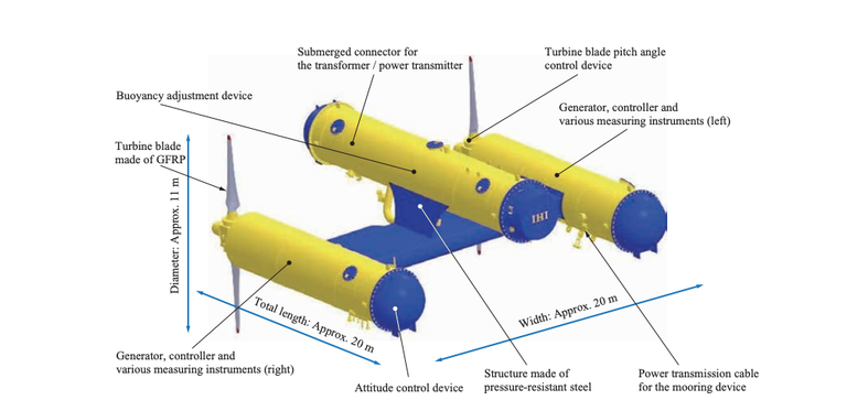 In februari voltooide het gevaarte een 3,5 jaar durende demonstratie met succes. Het plan is nu om het in 2030 in te zetten in de Kuroshio-stroom, een van de sterkste stromingen ter wereld langs de oostkust van Japan. Daar wordt het op de bodem van de zee verankerd.