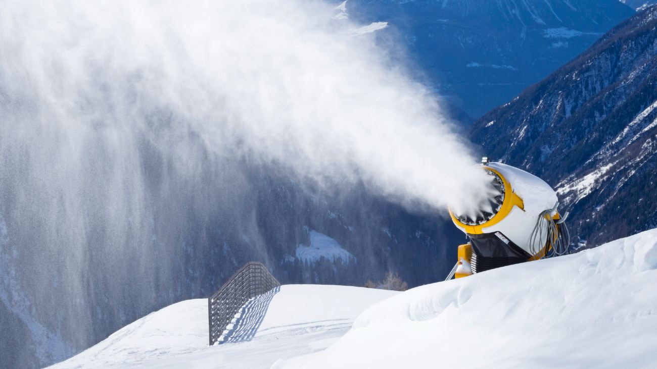 Een van de manieren om pistes van sneeuw te voorzien is het gebruik van sneeuwkanonnen. Deze zien er een beetje uit als straalmotoren en ze werken door een mengsel van water en lucht op hele hoge druk te brengen. “Dit gaat tot 20 of 30 bar, dus 20 of 30 keer zoveel druk als wij normaal op aarde ervaren”, vertelt Hans Oerlemans, hoogleraar Marien en Atmosferisch onderzoek aan de Universiteit Utrecht. Daarna spuiten de kanonnen het mengsel met veel kracht in de atmosfeer. “Door het verschil in druk zet het mengsel uit en koelt het enorm af. De waterdruppels vormen dan sneeuwvlokken.”