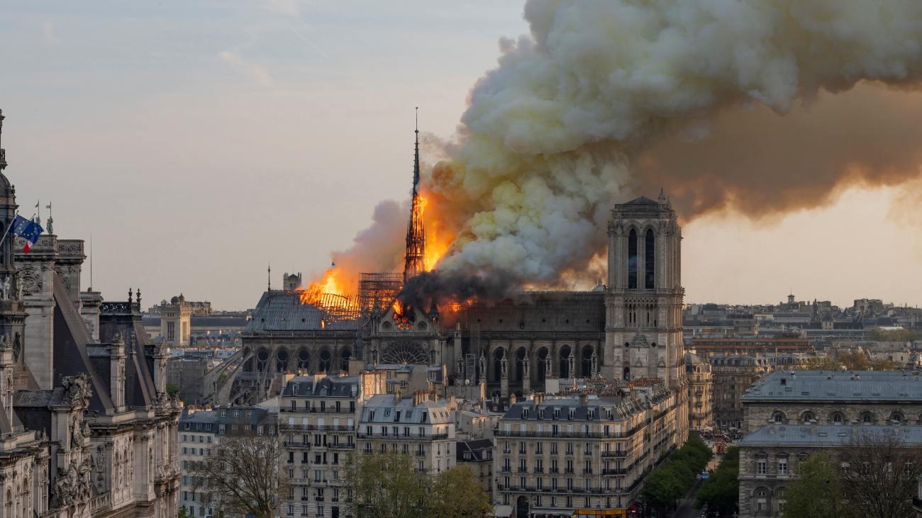 Het was 15 april 2019, net na zes uur ’s avonds, toen de Parijzenaren in shock toekeken hoe ‘hun’ Notre-Dame in vlammen leek op te gaan. De ongeveer vierhonderd uitgerukte brandweerlieden konden niet voorkomen dat de deels dertiende-eeuwse eiken draagconstructie het begaf en het dak instortte. Om iets voor acht uur kwam tot ontzetting van de omstanders ook de karakteristieke, met lood bedekte houten torenspits naar beneden.