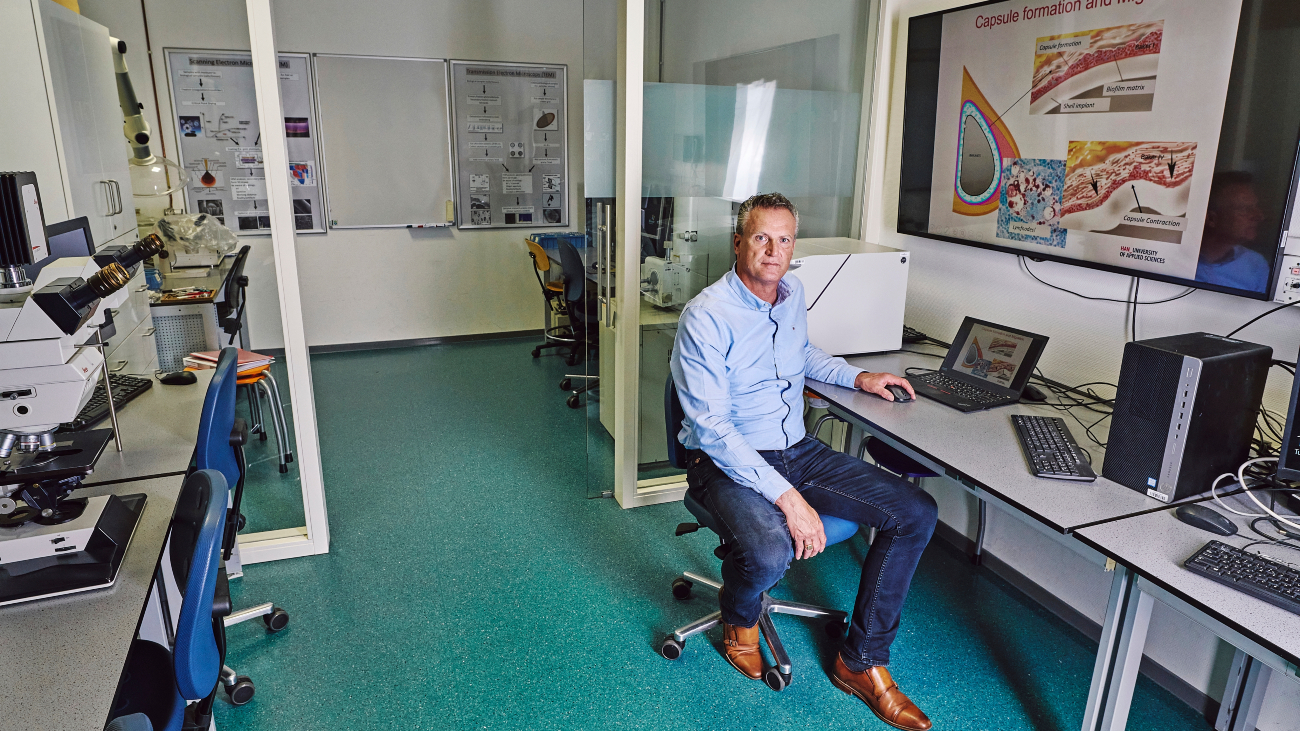 Dijkmans carrière maakte een draai van 180 graden toen hij in 2002, als hoofd van het elektronenmicroscopie-lab van het Radboud UMC in Nijmegen, werd benaderd door een plastisch chirurg. “Ze zag steeds vaker dat vrouwen met borstimplantaten gezondheidsproblemen kregen en dacht daarom dat er iets mis moest zijn. Ze vroeg of ik dit voor haar kon onderzoeken. Ik beschikte in mijn lab namelijk over verschillende geavanceerde microscopen waarmee ik weefsels en implantaten kon bestuderen. Daar was alleen vanuit de universiteit weinig tijd en al helemaal geen geld voor, dus heb ik dat maar in mijn eigen tijd gedaan.” Jarenlang werkte de wetenschapper op een laag pitje aan dit onderzoek. Inmiddels zijn we ruim twintig jaar verder en heeft Dijkman honderden implantaten en weefsels, die hij van plastisch chirurgen of patiënten kreeg aangereikt, onder zijn microscoop gehad. Maar na een paar exemplaren wist de wetenschapper al dat het foute boel was. “Alle siliconen borstimplantaten, dus ook de exemplaren die aan de strengste eisen voldoen, lekken vanaf dag één. En de gezondheidsrisico’s die daarmee gepaard gaan worden nog altijd onderschat.”
