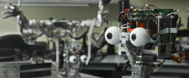 “Hij is bewust gemodelleerd naar een kind dat tussen de drie en drieënhalf jaar oud is”, vertelt de Nederlander Paul Verschure die het roboticalab runt en mij zojuist aan de ‘kleuter’ heeft voorgesteld. Net zoals een echt kind leert de iCub van zijn omgeving door te zien, te horen en te voelen. Door een wit masker kijken zijn grote, zwarte robotpupillen me aan. Zijn metalen skelet zit vol elektronica en maakt van hem het meest geavanceerde robotkind ter wereld. Vooral zijn handen zien er zeer verfijnd uit. Perfecte grijphanden met vingerkootjes omhuld door een stevige plastic huid.