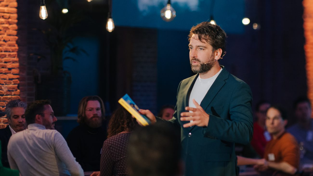 “Oei, dat is wel een lastige…”, begint hij, om een paar tellen later toch vrij gemakkelijk een volzin over tafel te gooien: “Ik denk dat de grote vraag is of we de manier waarop we nu voedsel produceren, consumeren en verspillen wel kunnen volhouden als er straks nóg meer mensen op deze wereld wonen.”