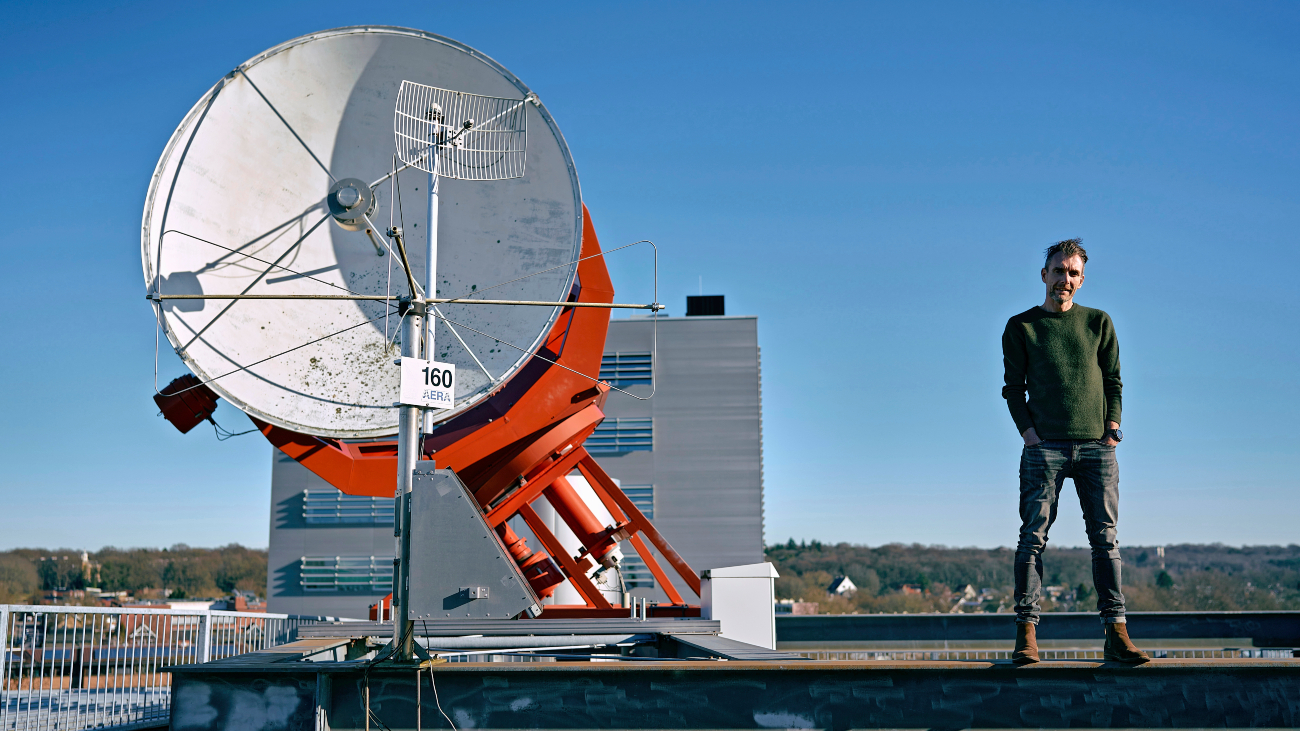 Hier is het allemaal mee begonnen.” Met blauwe stofhoesjes over zijn schoenen en een trotse blik op zijn gezicht loopt Marc Klein Wolt naar een van de werktafels in ‘zijn’ Radboud Radio Lab. Hij pakt een hightech knutselwerkje en houdt het omhoog: drie lagen aluminium met daarop printplaatjes, snoeren, computerchips en een accu. “Dit was het allereerste instrument waar ik aan werkte. Het kon radiostraling verzenden en ontvangen vanaf de Stratos-raket van de TU Delft.” (Een raket die onderzoek deed op een hoogte van 21 kilometer, red.)