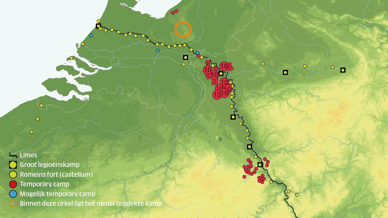 In Duitsland staat de teller al op meer dan 130 temp camps, in Groot-Brittannië op 540. Het zou wel heel opmerkelijk zijn als dergelijke kampementen vrijwel ontbraken langs het Nederlandse deel van de Romeinse rijksgrens, de limes. Goeree ging op zoek naar eventuele locaties op de Veluwe. Met succes dus, weten we nu: tussen de limes en het Ermelose kamp vond hij dit ‘nieuwe’ temp camp, pas het derde in zijn soort.