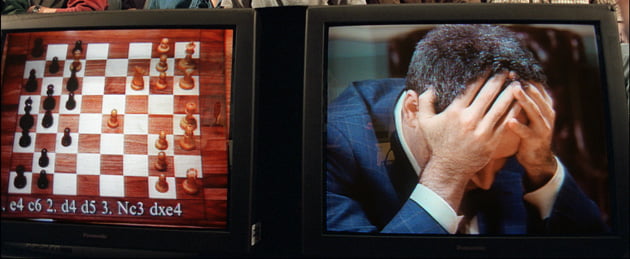 Het is 11 mei 1997 wanneer een totaal gebroken Garri Kasparov de pers in een New Yorkse wolkenkrabber te woord staat. Vol frustratie. Vol ongeloof. “Ik ben bedrogen”, denkt hij. Hij wilde eigenlijk wegblijven van de persconferentie, maar zijn moeder heeft hem overgehaald om toch te komen. Zojuist heeft de beste schaker uit de geschiedenis de kortste nederlaag uit zijn loopbaan geleden. Capitulatie na negentien zetten – en dat nog wel tegen een computer: IBM-supercomputer Deep Blue. “Ik heb op mijn emoties verloren van een niet-emotionele tegenstander”, zou hij zes jaar later zeggen in de documentaire Game over.