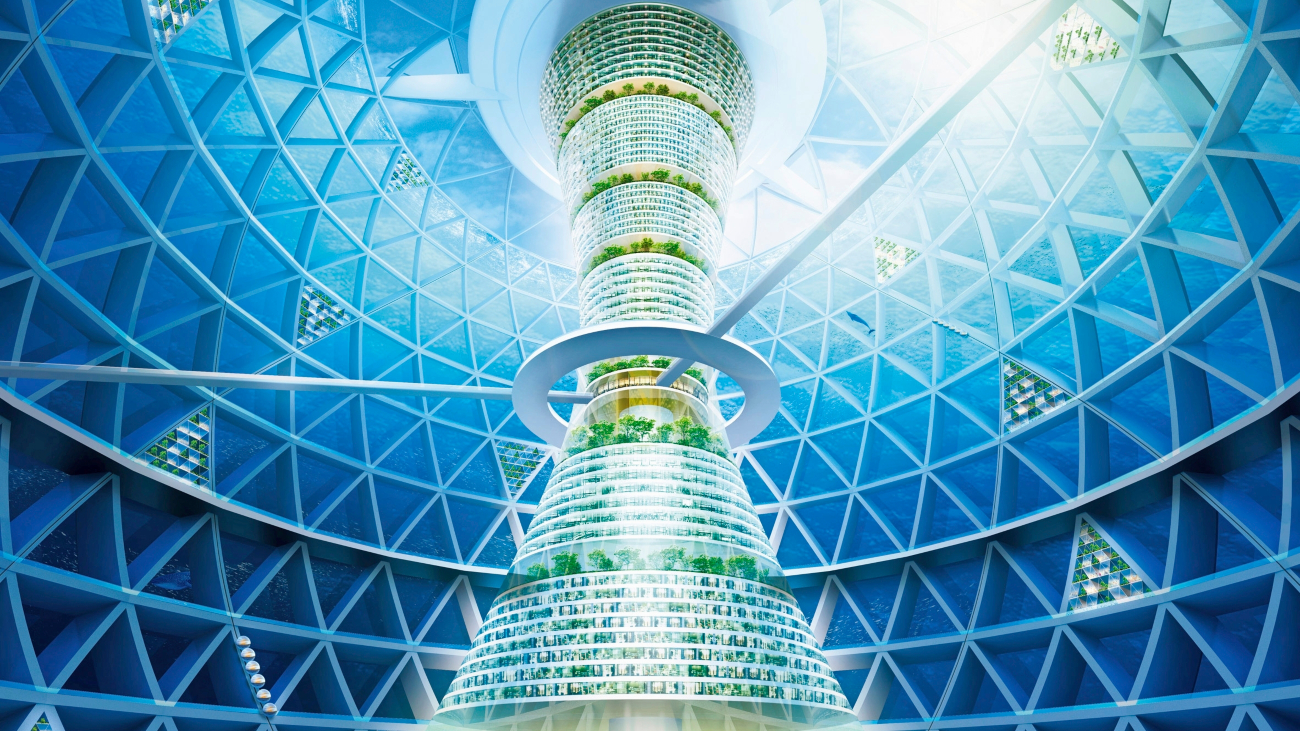 En uit het huwelijk van die twee behoeftes – meer woonruimte en verkenningsdrift – is iets waarlijk wonderlijks geboren: de Ocean Spiral. Beeld je een boei in. Maar dan wel een stukkie groter, met een diametertje van grofweg 500 meter. Net als een gewone boei zit ook dit exemplaar vast aan de oceaanbodem, op een diepte van 3 tot 4 kilometer. Met een spiraalvormige tunnel – en dat is meteen het unique selling point van dit 24 miljard euro kostende project, dat volgens bouwer Shimizu in 2030 klaar moet zijn. Die spiraal kan namelijk het hele gevaarte onder water trekken. Handig als er weer eens een storm voorbijraast. Bovendien geeft de techniek je de unieke gelegenheid om een tijdlang onder water te wonen. Op papier klinkt het helemaal niet zo gek.