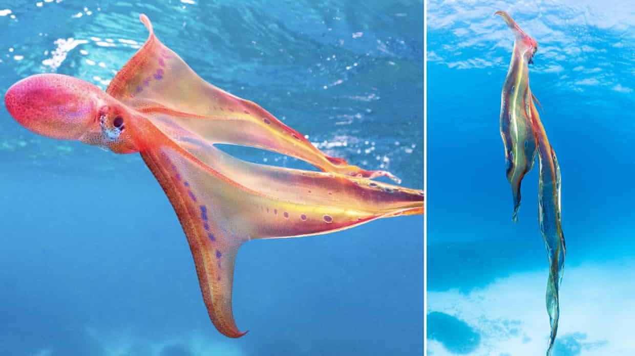 De psychedelische ‘cape’ van de dekenoctopus is bijzonder mooi. Een enthousiaste bioloog legde de dans van het adembenemende weekdier vast.