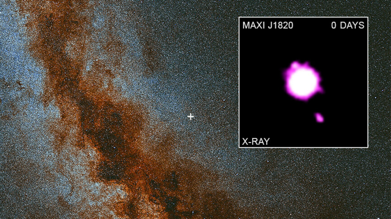 Het zwarte gat en diens ‘compagnonster’ staan op pakweg 10.000 lichtjaren van aarde. Samen vormt het duo het zogenaamde MAXI J1820+070-systeem. Het zwarte gat, ongeveer acht keer zo zwaar als onze zon, is een zogenaamd stellair zwart gat, ontstaan na de dood van een zware ster (meer dan 25 zonnemassa’s).