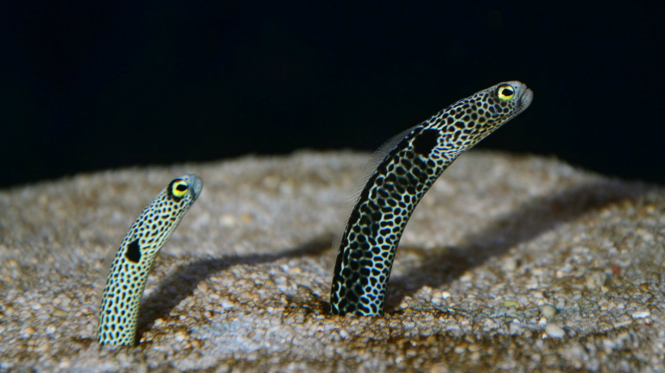 De zogenaamde gevlekte buisaal (Heteroconger hassi) is een zeepaling, niet veel dikker dan je duim. Ze zijn van nature schuw. Zó schuw dat je, als je ze ziet, waarschijnlijk alleen hun kopje boven het zand ziet uitsteken. De rest van hun lange lijfjes zit verstopt in het sediment.