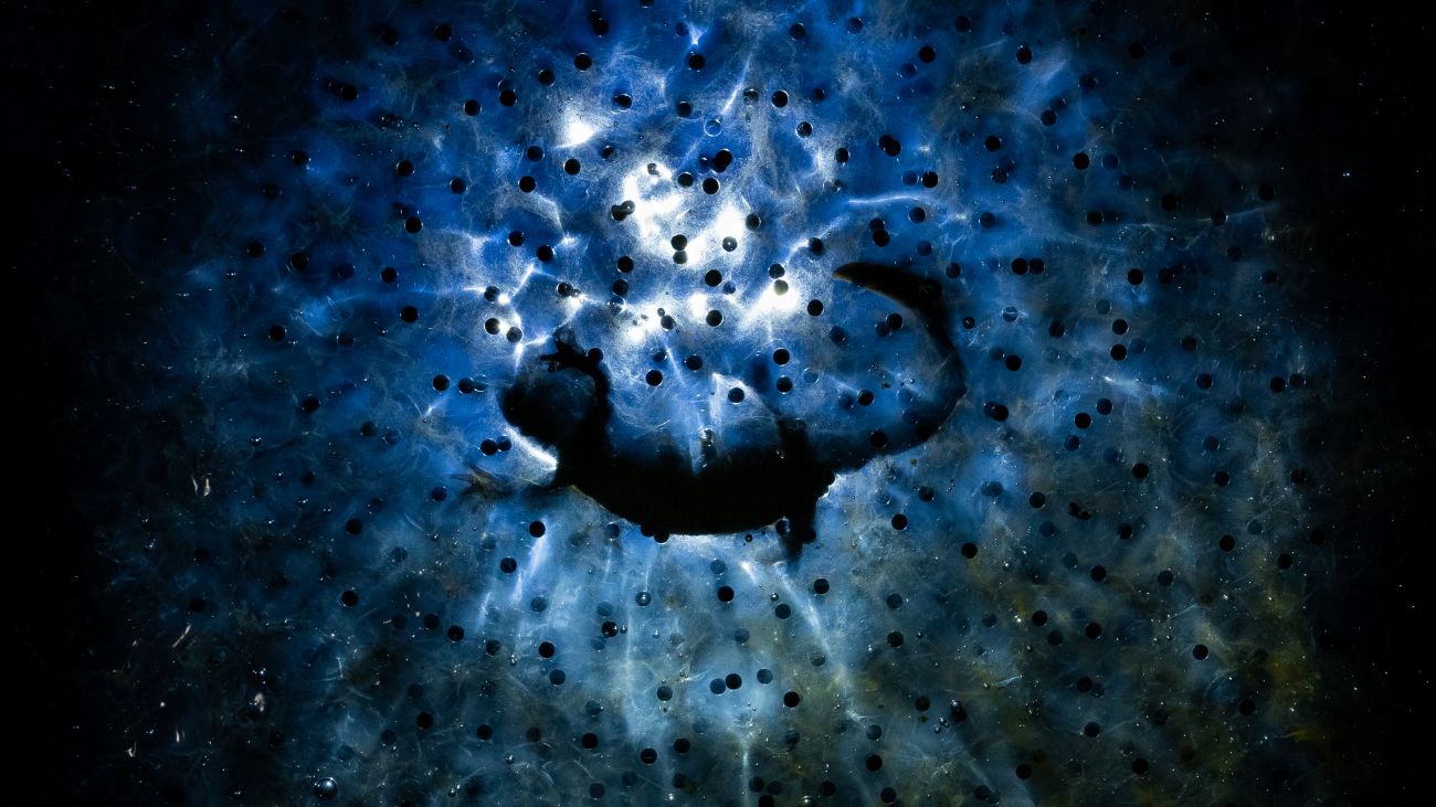 Litauszki geniet van zijn woonplek in de Duitse natuur, waar hij zich laat fascineren door al het leven dat zich daar afspeelt, met name door de alpensalamanders in de langzaam stromende beekjes. Zodra de kikkers namelijk hun eitjes hebben gelegd, duiken de salamanders bij de schemering op, en smullen de hele nacht van de broedsels. Om dat vast te leggen, plaatste hij ’s middags al zijn camera in een onderwaterhuisje, en stelde die vooraf al scherp. Toen de eerste salamander tijdens de schemering verscheen, klikte Litauszki een ledlampje aan en activeerde met een zelfgemaakte afstandsbediening zijn camera.