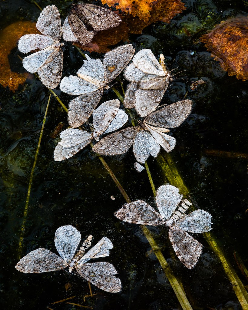 Het verhaal achter ‘Last Flight’: amateurfotograaf Harald Cederlund maakte met een vriend een lange wandeling door het Zweedse berkenbos Grövelsjön. Maar toen zijn wandelmaatje zich niet zo lekker voelde, lasten ze een pauze in. Harald besloot de directe omgeving te verkennen, en nam natuurlijk zijn camera met zich mee. Hij volgde het pad naar het historische verkenningspunt Linnés källa, waar het bezaaid was met grote hoeveelheden dode motten, herfstbladeren, grassen en algen. De motten leken bijna over het weiland te dansen en hier hun laatste vlucht te maken.