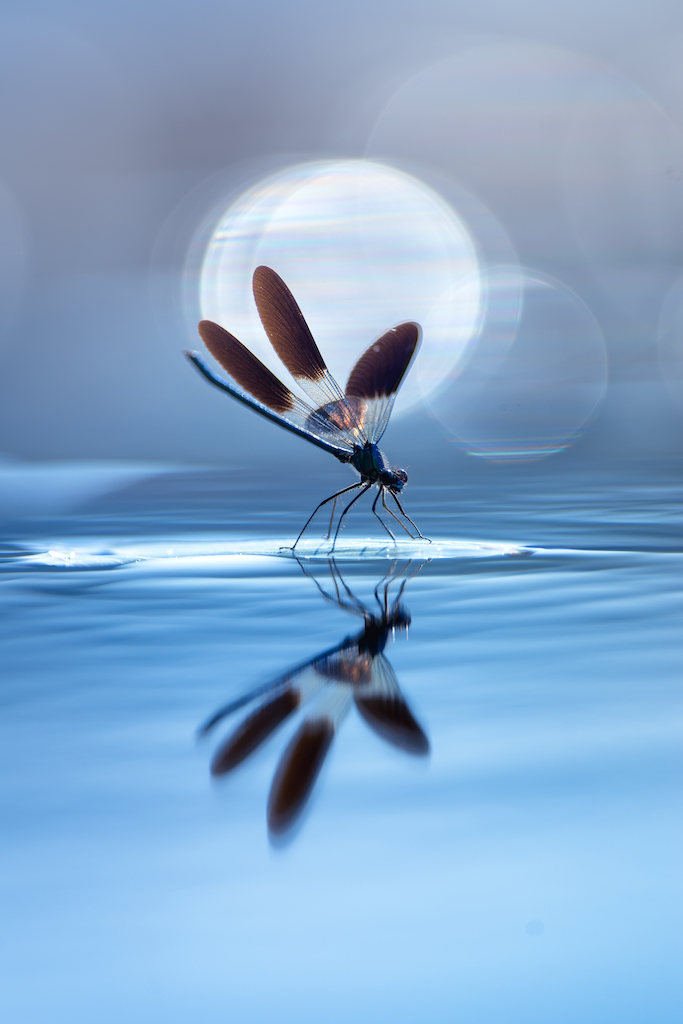 Al jaren spookte het door het hoofd van de amateurfotograaf Sebastien Blomme om het sierlijke ballet van de libellen vlak bij zijn huis vast te leggen. De Fransman merkte op dat er regelmatig een libelle op dezelfde plek verscheen en wachtte hier geduldig op de terugkeer van het insect. Toen het moment daar was, schoot hij tientallen keren met de burst-modus. Al die pogingen hebben deze prachtige plaat genaamd ‘The Ice Skater’ opgeleverd. De jury bekroonde Sebastien met de derde podiumplek.