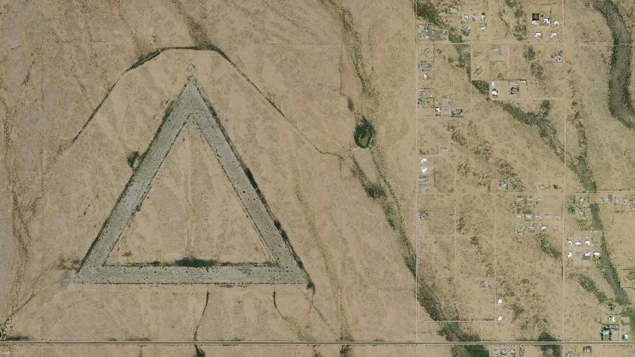 En deze mysterieuze driehoek? Die stamt uit 1942 en heet het Luke Auxiliary Field #4 (Aux 4). Er waren in totaal acht van dit soort ‘bijvelden’ rond Luke Air Force Base en ze werden gebruikt om in razend tempo piloten op te leiden voor de P-40-jachtvliegtuigen.