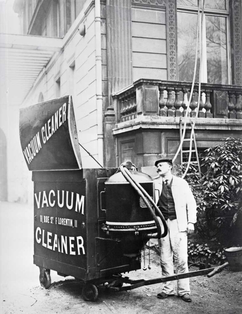 De eerste stofzuiger, ontwikkeld door de Britse ingenieur Hubert Cecil Booth in 1901, was te groot voor particulieren. In plaats daarvan bood Booth schoonmaakdiensten aan. De met een benzinemotor (bijgenaamd Puffing Billy) aangedreven machine werd door een paard naar de bestemming getrokken. Daar werden de zuigslangen uitgerold en naar binnen gesleept. Ondanks het lawaai en de klachten van omwonenden werd de stofzuiger snel populair. Zo werd hij bijvoorbeeld gebruikt om het tapijt in Westminster Abbey schoon te maken voor de kroning van Edward VII.