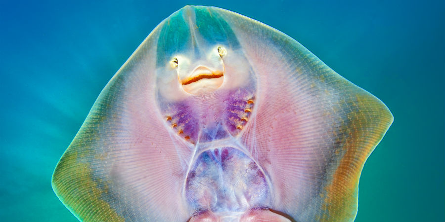 De winnaars van de Underwater Photographer of the Year zijn weer bekendgemaakt. Zoals verwacht, zitten er weer prachtige platen tussen, maar ook een aantal vrolijke, waaronder deze. Fotograaf Nicholas Samaras kiekte de vrolijk lijkende rog voor de kust van Stratoni, een Grieks dorp met slechts 1100 inwoners dat een goed bewaard geheim is voor duikers.