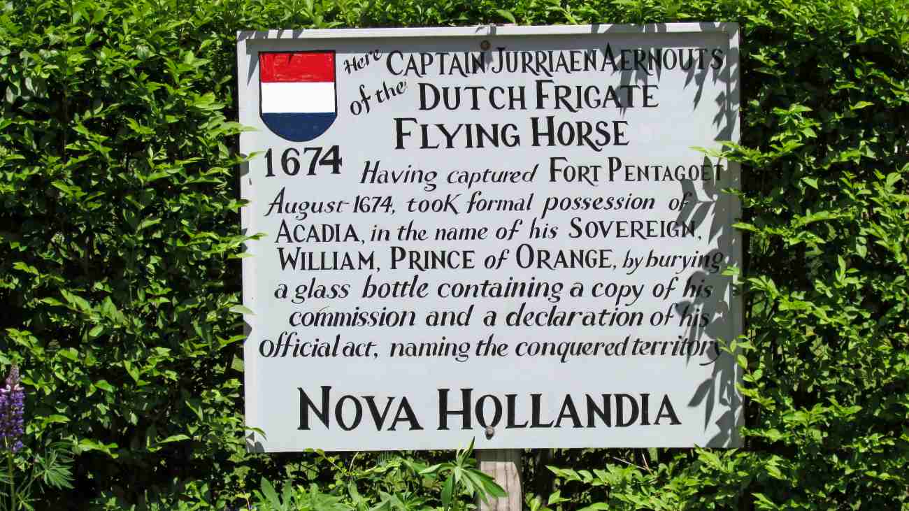 In elk geval heeft iemand de moeite genomen een bord neer te zetten in Fort Pentagouet dat herinnert aan de verovering door Aernoutsz (zie afbeelding bovenaan dit artikel). Oké, erg professioneel ziet dat bordje er niet uit – maar goed, dat was de Nederlandse heerschappij over het gebied ook niet.
