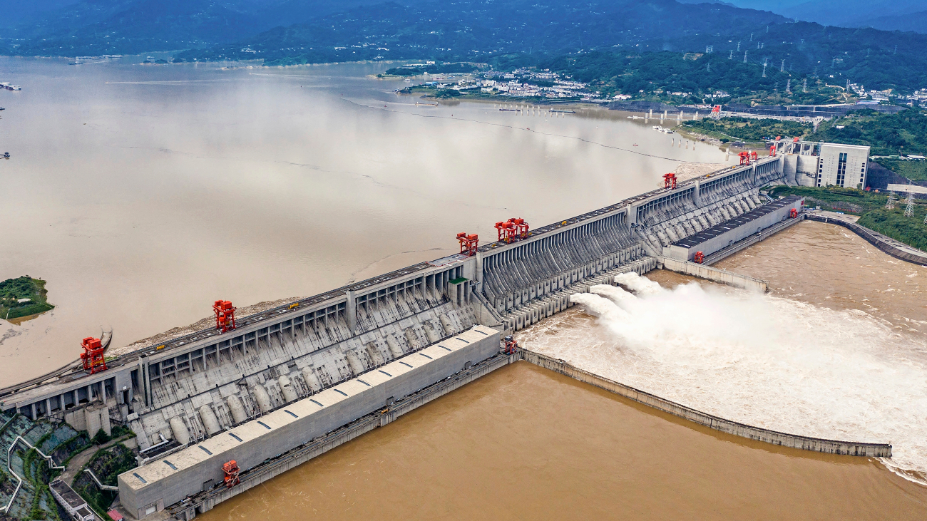 Maar de hoeveelheid water die in het stuwmeer van de Drieklovendam wordt opgeslagen is óók ontzettend groot: het heeft een volume van 39 km3 . Als je dat water in flesjes doet en die netjes op een rij zet, gaat die 100.000 keer rond de aarde. Die enorme hoeveelheid water wordt 110 meter omhoog gebracht door de stuwdam.