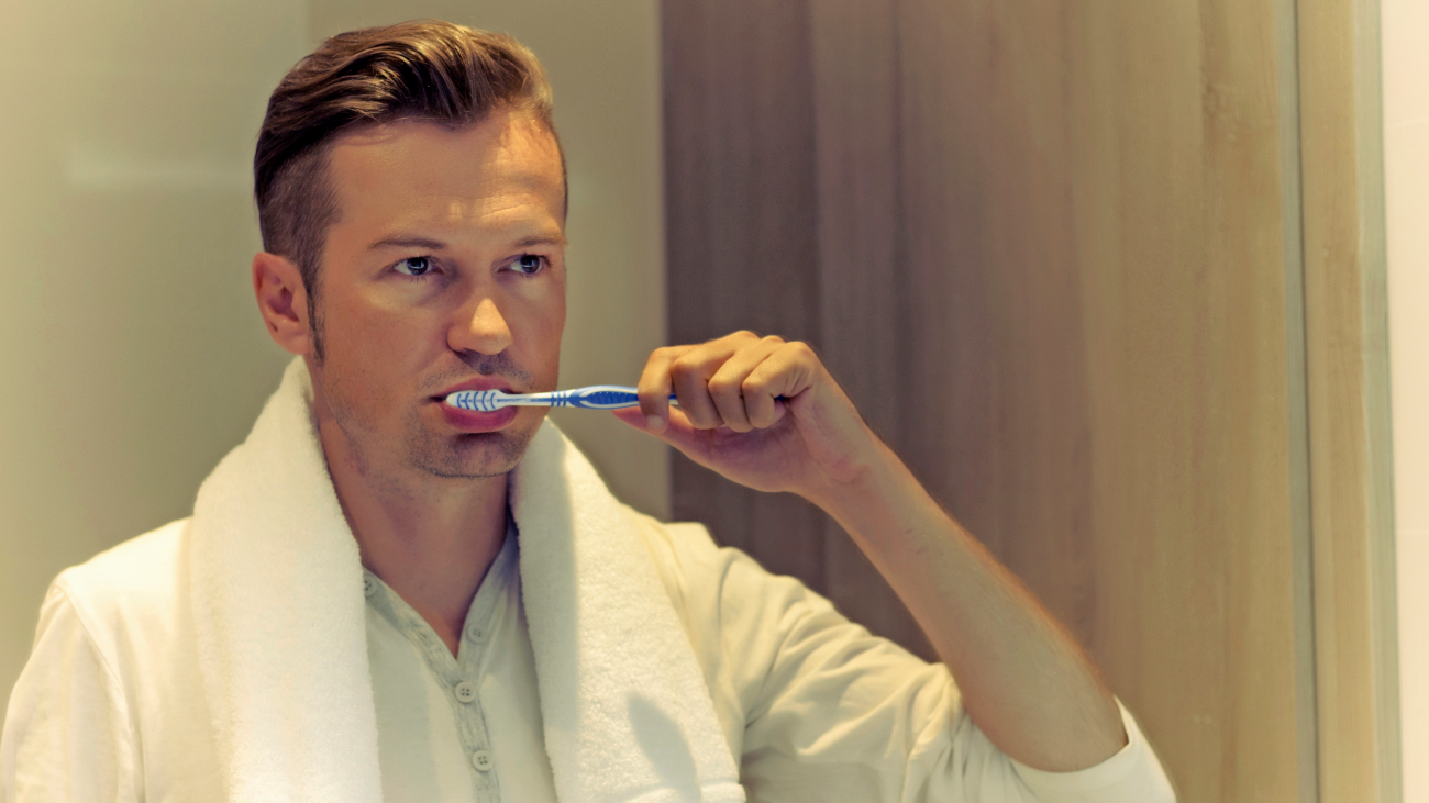 Maar, zegt Slot: “Tandenpoetsen direct na het eten kan het tandglazuur heel licht beschadigen. Vooral fruit, vruchtensap en suikers zorgen voor een zuurdere omgeving in je mond. Poetsen op dat moment is minder verstandig omdat het glazuur dan kwetsbaarder is. Die zuuraanval houdt ongeveer een halfuur aan en wachten tot hij voorbij is, is vaak niet handig tijdens het drukke ochtendritueel.” Als je vóór het ontbijt poetst, is dit risico er niet, maar dan kan het fluoride weer minder lang inwerken.