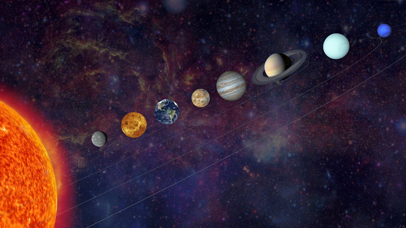 De acht planeten van ons zonnestelsel draaien met compleet verschillende snelheden om de zon. Mercurius doet bijvoorbeeld 88 dagen over een ronde, Neptunus 165 jaar. Bovendien bewegen de planeten niet allemaal in hetzelfde vlak rond de zon. Zo is de baan van Venus 3,4 graden gekanteld ten opzichte van de baan van de aarde, en de baan van Mercurius zelfs 7 graden.