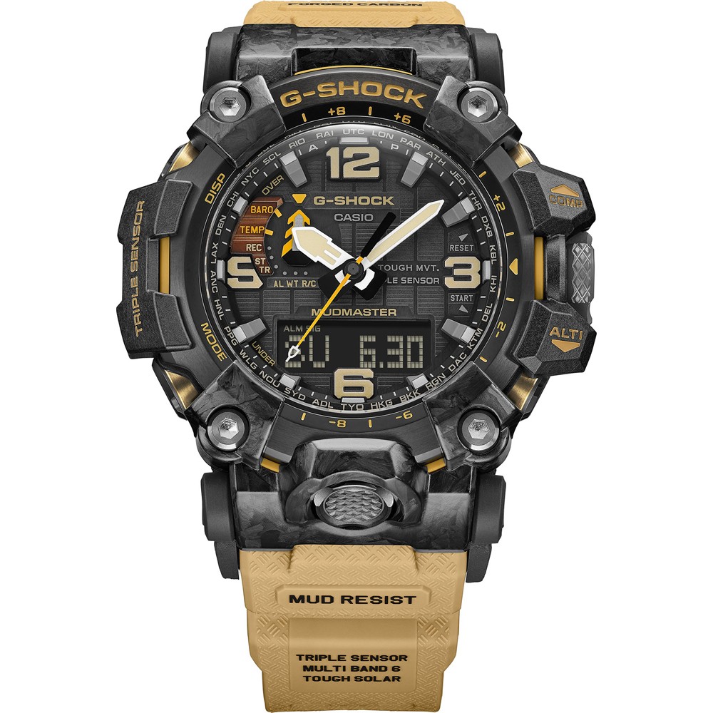 Is het een vliegtuig? Is het een raceauto? Of is het de G-Shock Mudmaster GWG-2000 van Casio? Inderdaad, dat laatste. Maar het horloge is wel gemaakt met forged carbon, wat ook wordt gebruikt in vliegtuigen en raceauto’s. Dus we snappen de verwarring. Het speciale materiaal (gebrouwen door koolstofdeeltjes in kunsthars te kneden) beschermt het polsklokje kennelijk nóg beter tegen zand, aarde en modder. En dat heb je wel nodig, als je bijvoorbeeld bestuurder bent van een vliegtuig of een raceauto.