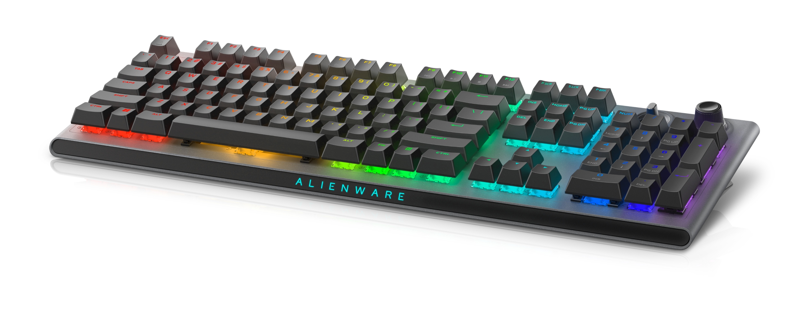 Het eerste draadloze gamingtoetsenbord van Alienware? Dat is de AW920K. En jawel, dat hebbeding zie je hiernaast op de foto. Bij dit mechanisch tikbord krijg je een snelle respons dankzij de 2.4GHz USB-C-dongle, kun je tot drie apparaten verbinden door bluetooth, mag je rekenen op 42 tot 46 uur batterijtijd, én word je verblind door de klassieke overdaad aan gekleurde RGB-lampjes. Je collega’s gaan het vast heel mooi vinden, dat eerste draadloze gamingtoetsenbord van Alienware.
