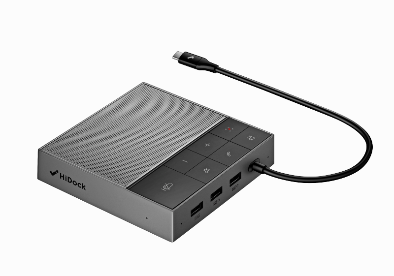Een speakerphone voor de moderne arbeidsslaaf. Dat is de ambitie van de HiDock. Het is een conference speakerphone en een voicerecorder én een USB-hub in één plug-and-play apparaatje, dat je makkelijk mee kunt nemen en dus zowel thuis als op kantoor als in een koffietentje kunt gebruiken – waar je dankzij slimme microfoontjes en geavanceerde noise reduction geen last hebt van anderen, terwijl zij wel ontiegelijk veel last hebben van jou. Groot succes op Kickstarter, uiteraard.