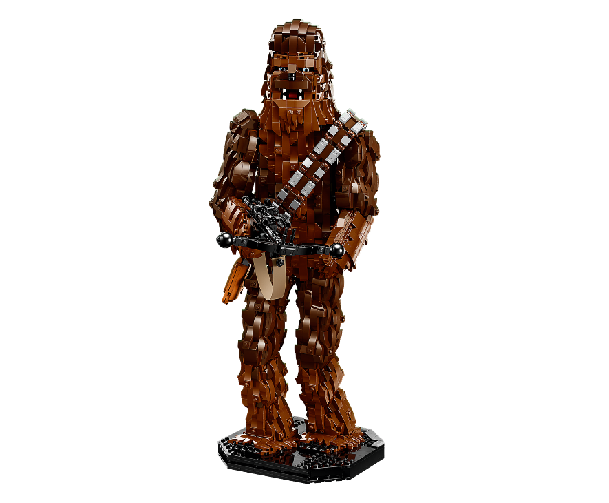 Een Chewbacca van LEGO. Het Chewbacca Build-and-Display Model werd eerder dit jaar al gepresenteerd op San Diego Comic-Con en is nu eindelijk verkrijgbaar. Kopers krijgen meer dan tweeduizend steentjes, waarmee ze zelf de beroemde Wookiee kunnen nabouwen, inclusief zijn vertrouwde bowcaster en kogelriem. Het uiteindelijke knutselwerkje is ongeveer 46 centimeter hoog en 18 centimeter breed. Fijn cadeautje voor jezelf én voor de veertigste verjaardag van Star Wars: Episode VI – Return of the Jedi.