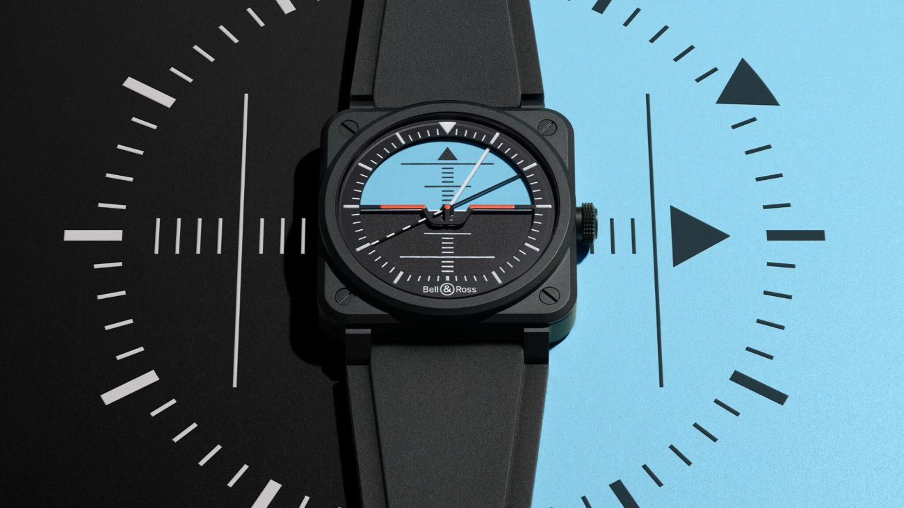 Een eerbetoon aan de luchtvaart. Zo zien de knutselaars van Bell & Ross deze BR-03 Horizon. Het polsklokje toont namelijk een kunstmatige horizon: het instrument dat een piloot de stand van zijn/haar/hun vliegtuig ten opzichte van de horizon vertelt. Het is duidelijk waarom die functie nuttig kan zijn in een cockpit, maar niet meteen waarom je hem in een horloge zou willen stoppen. Gelukkig kun je er ook gewoon op aflezen hoe laat het is.