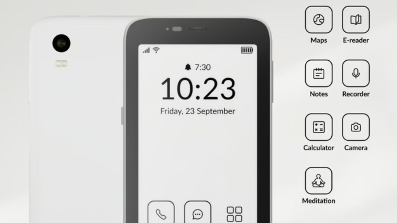 De Mudita Kompakt is een telefoon voor minimalisten. Deze belmachine draait immers geen hippe apps van Google of Apple, maar biedt alleen noodzakelijke toepassingen zoals een rekenmachine, een camera en een navigator. Ook heeft hij geen kek superscherm met 4K UHD-resolutie en upscaling, maar alleen een eenvoudig e-inkt-scherm zoals je dat misschien kent van je e-reader. Op crowdfundwebsite Kickstarter was deze minimalistische telefoon een maximaal succes.
