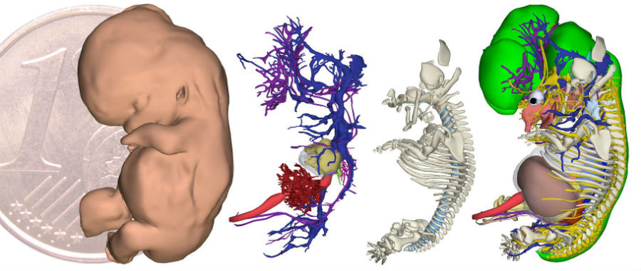 Veel ouders zien hun kleintje pas voor het eerst tijdens de tiende of twaalfde week van een zwangerschap. Maar vaak is de foetus op de echo nauwelijks te onderscheiden van een pinda. Dat is niet het geval bij de driedimensionale atlas die onderzoekers van het AMC online hebben gezet. Hier zijn embryo’s duidelijk zichtbaar gemaakt tijdens de eerste twee maanden van hun ontwikkeling.