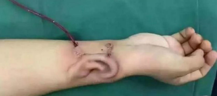 Sinds november groeide het oor op de arm van een Chinees die het was verloren in een auto-ongeluk in 2015. Zijn gehoor raakte hij overigens niet kwijt. Vorige week was het dan eindelijk zo ver: het oor werd in een zeven uur durende operatie weer aan het hoofd bevestigd. Dit gebeurde in het ziekenhuis in de Chinese provincie Shaanxi.