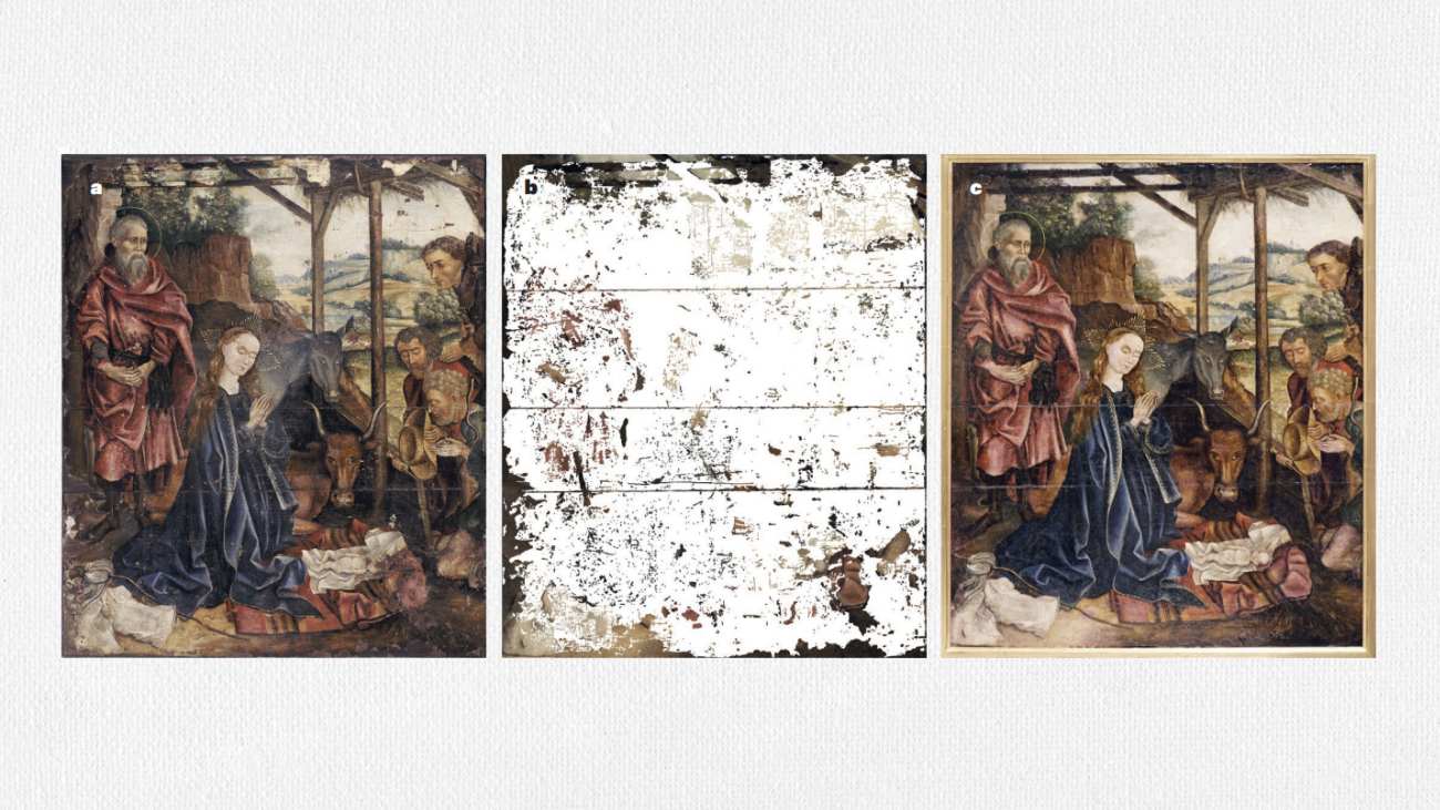 Een beschadigd vijftiende-eeuws schilderij is in slechts enkele uren visueel hersteld door er een soort lamineervel overheen te plaatsen.