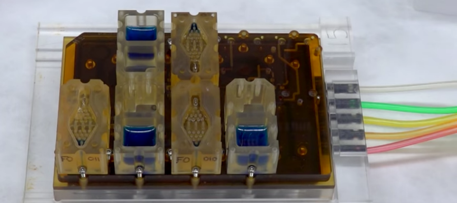 De chip – EVATAR genaamd – past gemakkelijk in je handpalm. Hij heeft meerdere kamers en een aantal leidingen en pompjes die vloeistof – ‘bloed’ – rondpompen. De kamers omvatten cellen van de eierstokken, eileiders, baarmoeder, baarmoederhals, vagina en de lever. Dat laatste orgaan speelt een grote rol in medicijnafbraak.