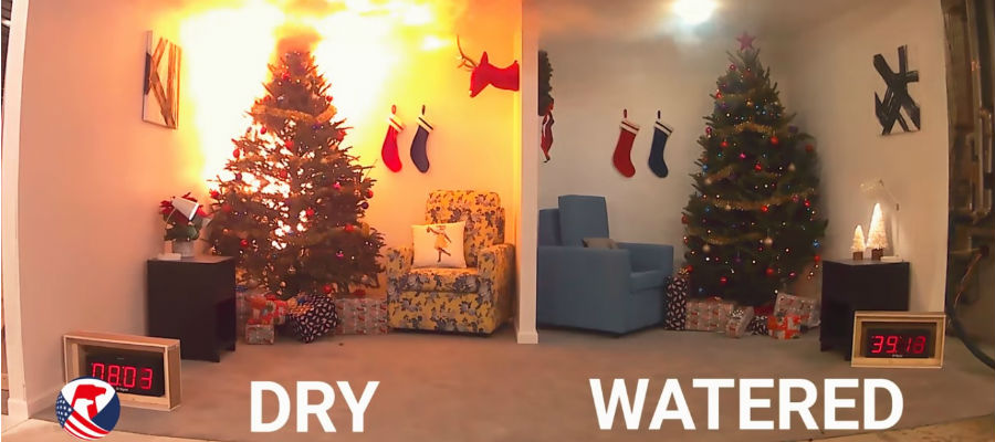 Dit benadrukt de U.S. Consumer Product Safety Commission maar weer eens met onderstaand filmpje. Wanneer een van de medewerkers een vlammetje opsteekt in de bewaterde boom (rechts) zie je rook ontstaan, maar verder gebeurt er vrij weinig. Wanneer er een klein fikkie wordt gestookt bij de droge boom (links), daarentegen, gaat het al vrij snel helemaal mis. Merry Christmas…