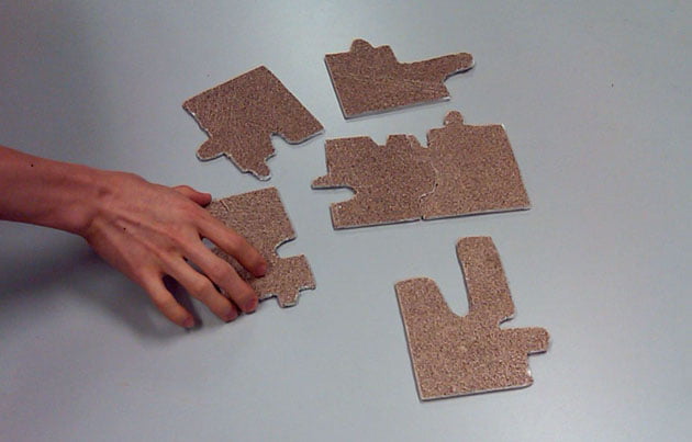Bij een andere test moesten proefpersonen een simpele puzzel maken, die ofwel uit gladde stukken bestond, ofwel uit stukken die met schuurpapier waren bedekt (zie foto). Vervolgens moesten ze een stukje tekst lezen waarin een gesprek tussen twee mensen werd omschreven. Deelnemers die net de ruwe puzzelstukken in handen hadden gehad, bleken deze gebeurtenis meer als competitief of vijandig te omschrijven dan de puzzelaars met de gladde stukken.