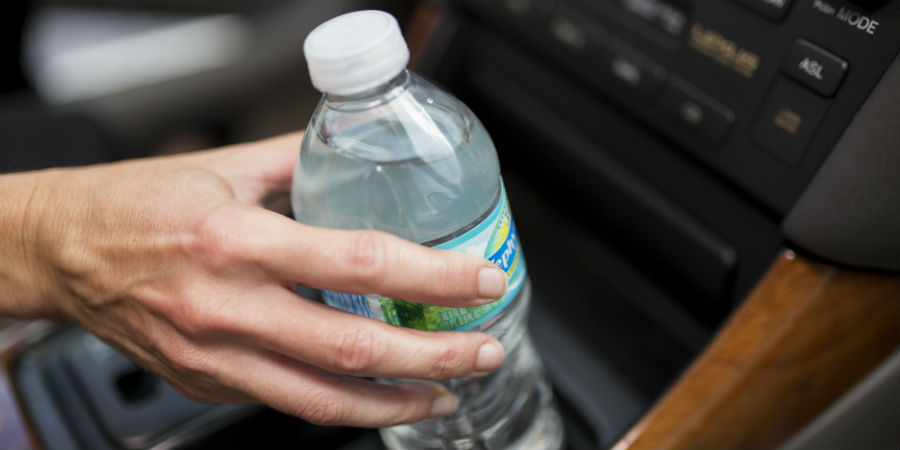 Als je ’s ochtends je flesje water in de auto laat liggen, kun je daar dan ’s avonds nog uit drinken, of word je dan ziek?