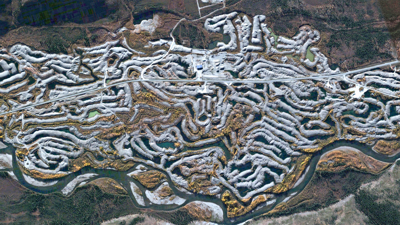 Jon Ruijmschoot, de inzender van deze Google Earth-foto, omschrijft ze als “de uitwerpselen die de grote golddigmachines achterlaten”. We hadden het niet beter kunnen verwoorden.