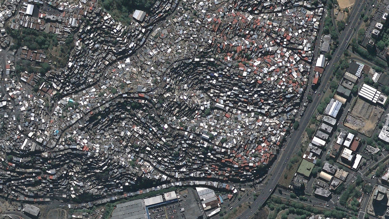 De Venezolaanse hoofdstad Caracas telt ergens tussen de drie en de vijf miljoen inwoners. Zestig procent daarvan leeft in dit soort sloppenwijken (barrios) aan de rand van de stad. Volgens Lonely Planet is het mede daardoor een uitdaging om verliefd te worden op de metropool. De reisgids meldt: “De politieke en culturele hoofdstad van het land is dichtbevolkt en hectisch, met een stevige dosis misdaad en vervuiling. Weinig delen van de stad zijn voetgangersvriendelijk, de meeste zijn ronduit gevaarlijk, en in het donker kun je je alleen met taxi’s verplaatsen.”