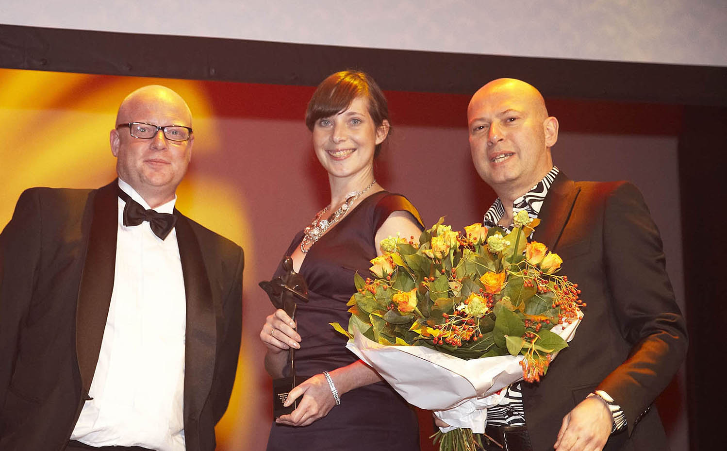 Hoofdredacteur Vivianne Bendermacher nam de prijs in ontvangst, samen met artdirectors Norbert Vermeer (rechts op de foto boven) en Martijn Blokland (links), die verantwoordelijk waren voor de bekroonde restyling.