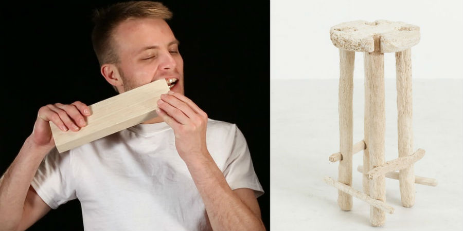 We get it – dingen die je zelf hebt gemaakt, zijn het leukst. Maar misschien draafde ontwerper Nik Bentel een beetje door. Hij maakte een kruk met slechts één stuk gereedschap: zichzelf – zijn handen en tanden.