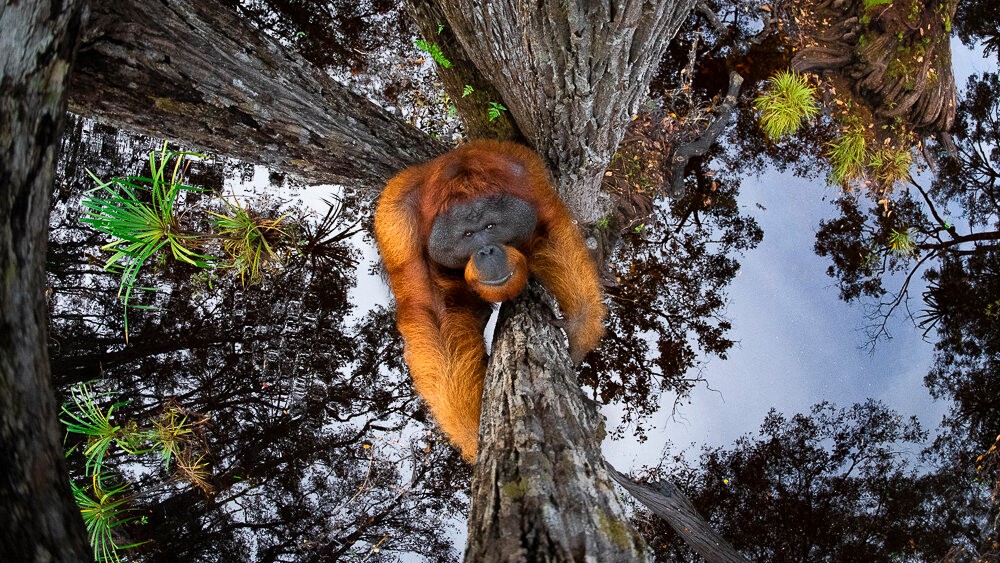 “Dit is een vaste route voor de orang-oetans om over te steken naar een ander klein eiland, dus ik dacht dat ik zeker dit beeld zou krijgen als ik geduldig zou wachten. Dat was moeilijk, maar het resultaat mag er zijn.” En zo dacht de jury er ook over.
