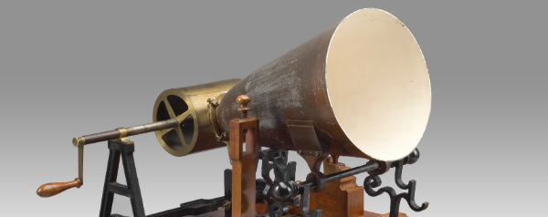 Niet muziek an sich, maar de apparaten die nodig zijn om muziek te (re)produceren, staan centraal in de tentoonstelling Overal muziek in Teylers Museum. Dat levert een intrigerende verzameling objecten op: je krijgt wasrolspelers, grammofoons en radio’s te zien, maar ook bijvoorbeeld een Moogsynthesizer en een vroege elektrische gitaar.