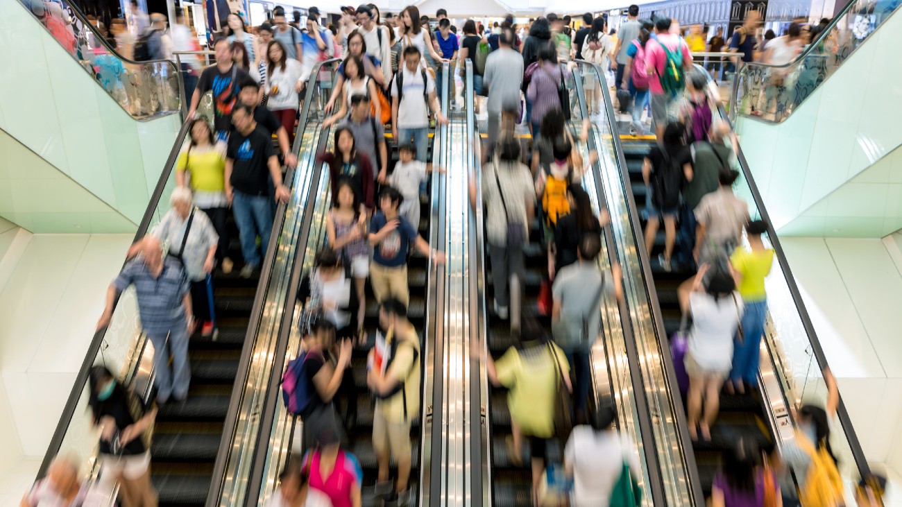 Zelfs op een roltrap kunnen soms files ontstaan. Is het niet veel efficiënter als iedereen de roltrap op loopt bij drukte?