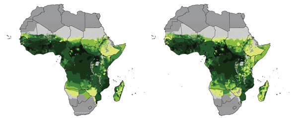 Het malariaprobleem is vooral nijpend in tien landen, zo blijkt verder: Nigeria, de Democratische Republiek Congo, Oeganda, Ivoorkust, Mozambique, Burkina Faso, Ghana, Mali, Guinea en Togo. Hier woont namelijk maar liefst 87 procent van alle Afrikanen die grote kans hebben om met malaria besmet te zijn.