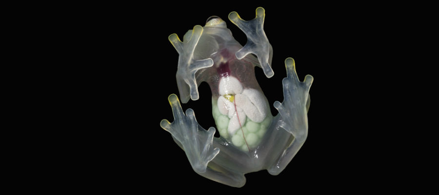 Je hebt mensen die glazen kikkertjes sparen en in een vitrinekast zetten. En hoewel de glaskikker op deze foto een levend wezen is, begrijpen we het als de bewuste verzamelaars hem graag zouden toevoegen aan hun collectie. Ze moeten wel een tijdje zoeken om er een te vinden: glaskikkers komen alleen voor in Midden- en Zuid-Amerika, waar ze zich verschuilen in bomen en struiken. Met hun doorzichtige lichaam zijn ze daar erg goed in, al heeft deze camouflage wel een keerzijde: het maakt de organen nogal kwetsbaar.